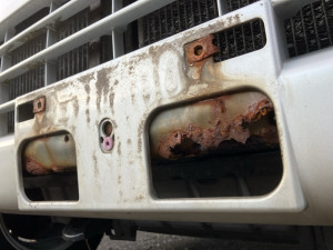 Rust/corrosion holes on the chassis/bottom of the vehicle.