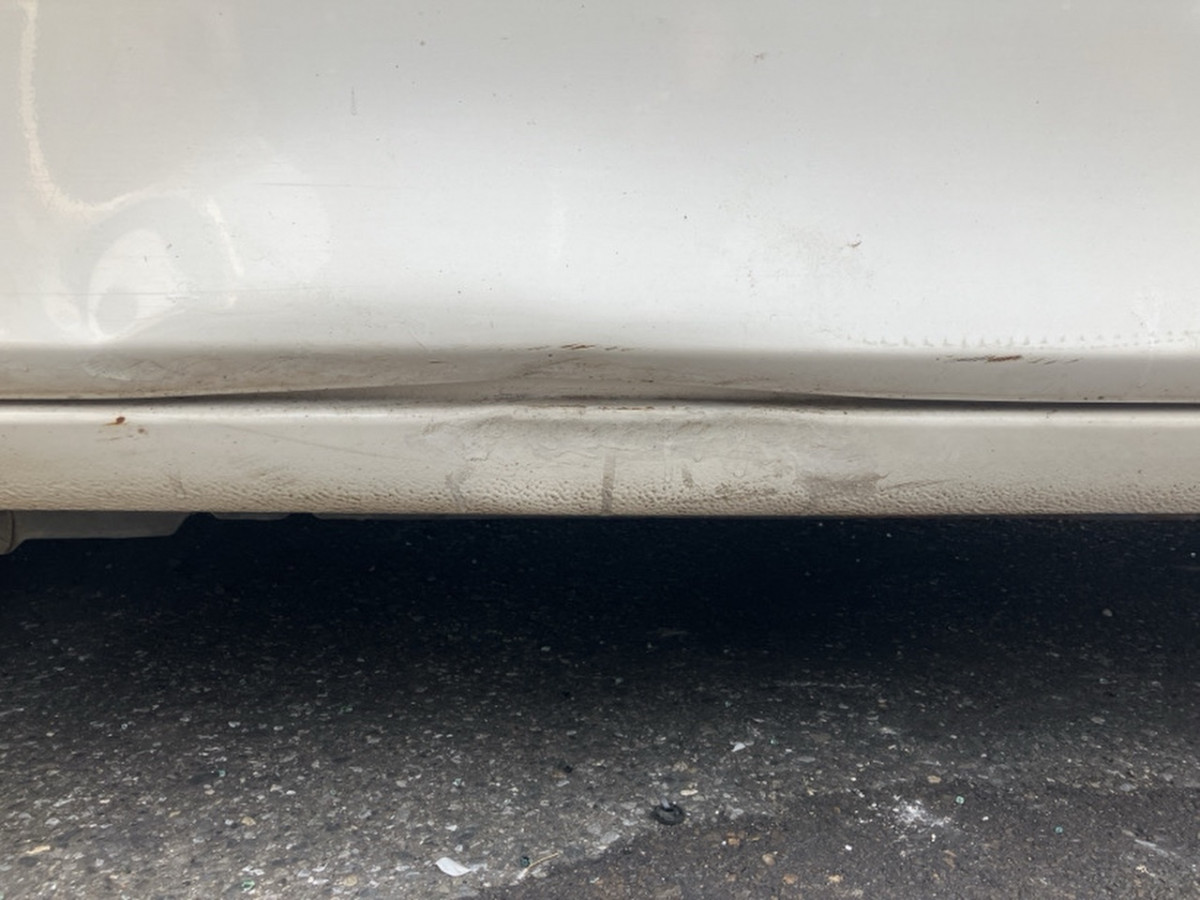 Left front door has a dent at the bottom.