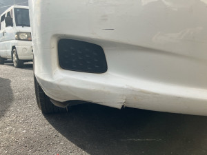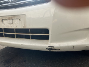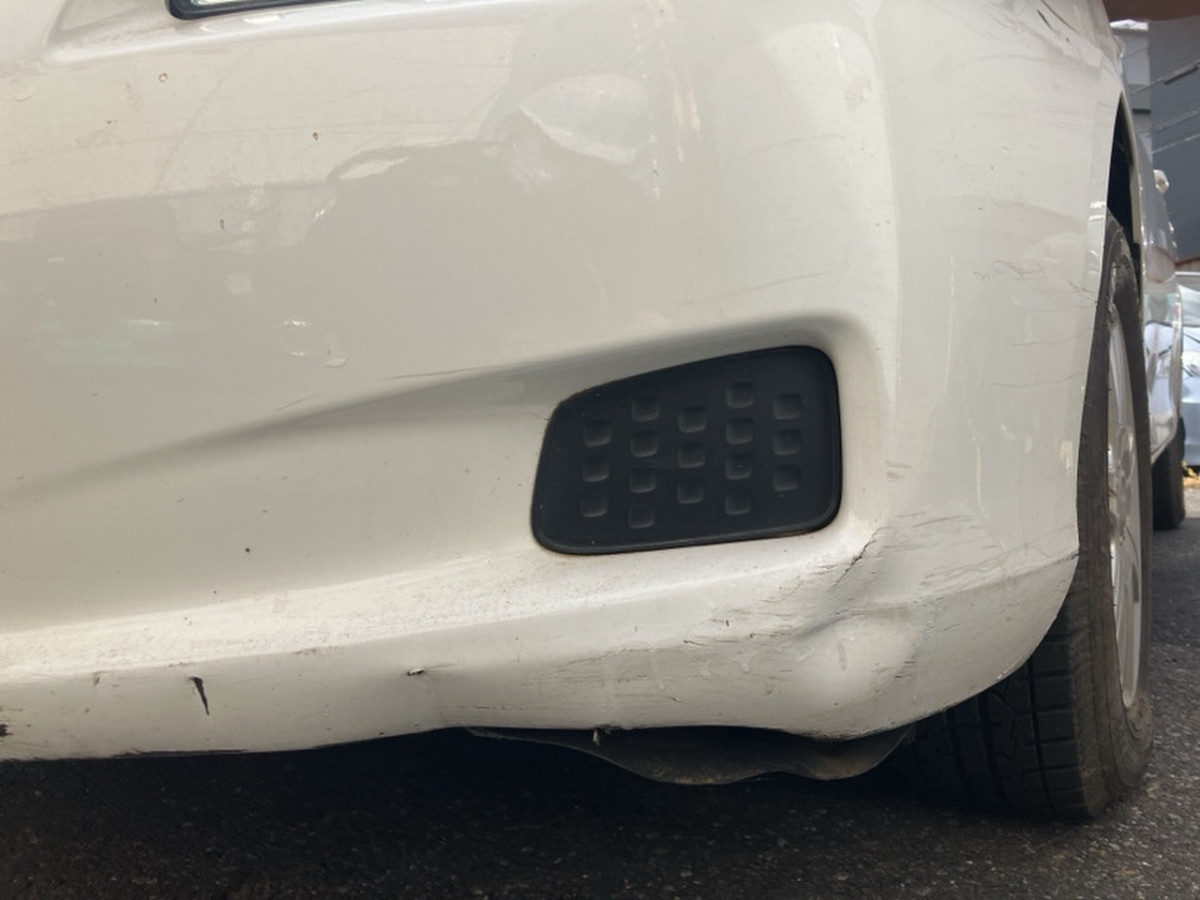 Front bumper has scratches and dents.
