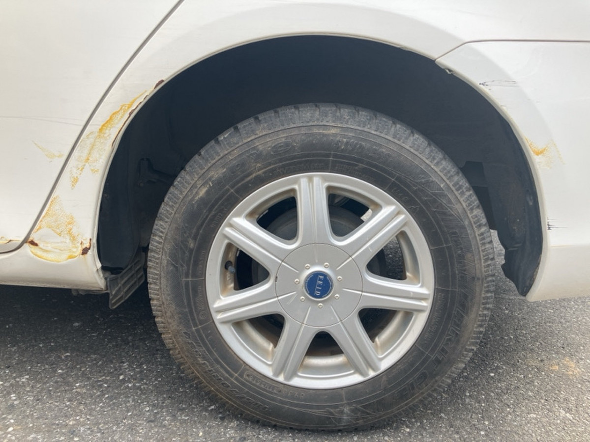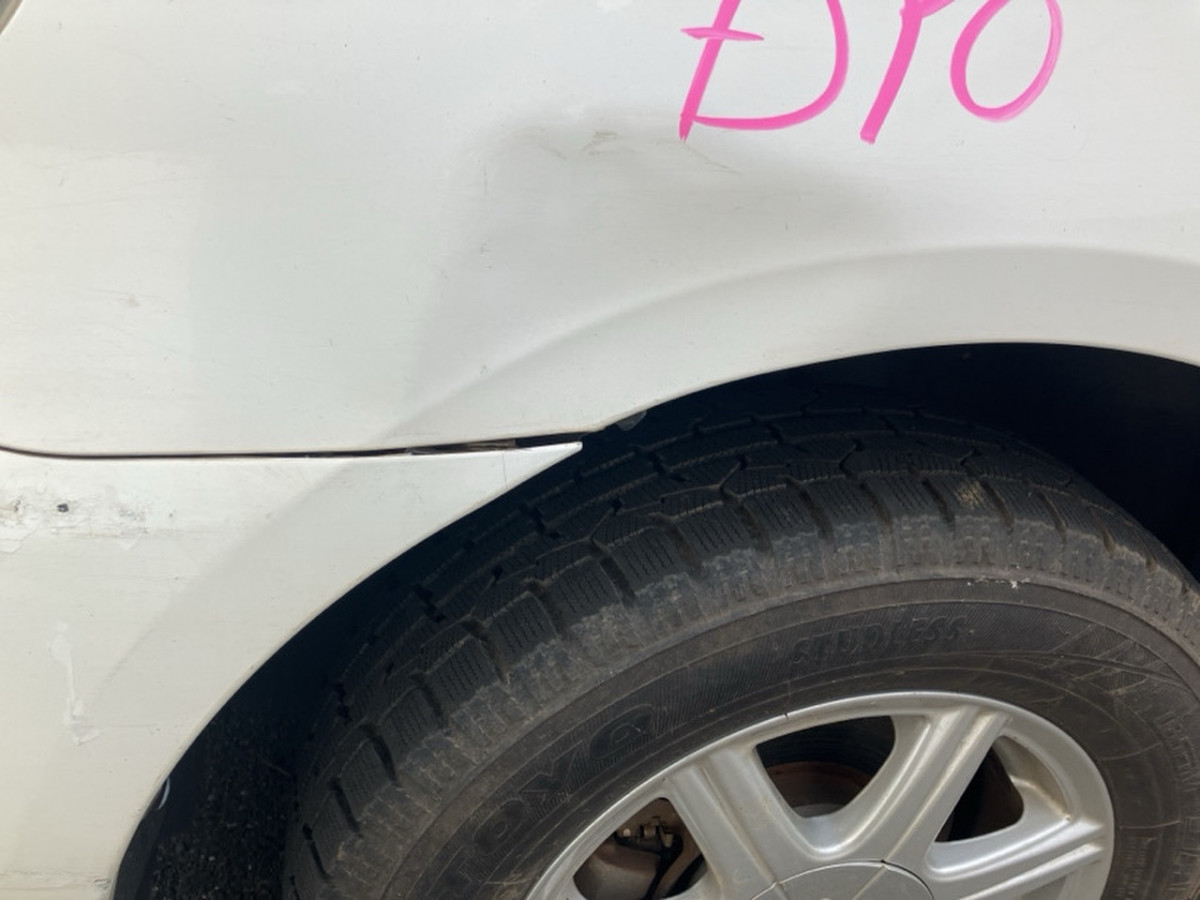 Left fender has a dent.