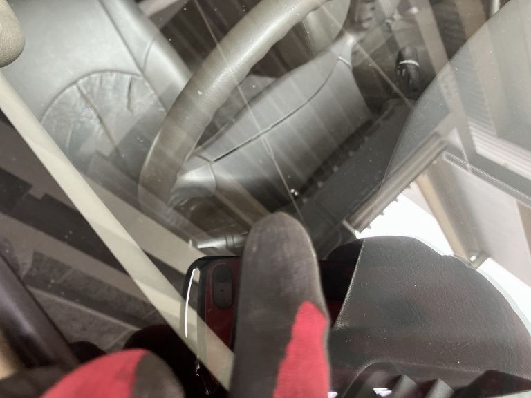 Windshield slightly cracked by a flying stone.