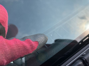 Windshield slightly cracked by a flying stone.
