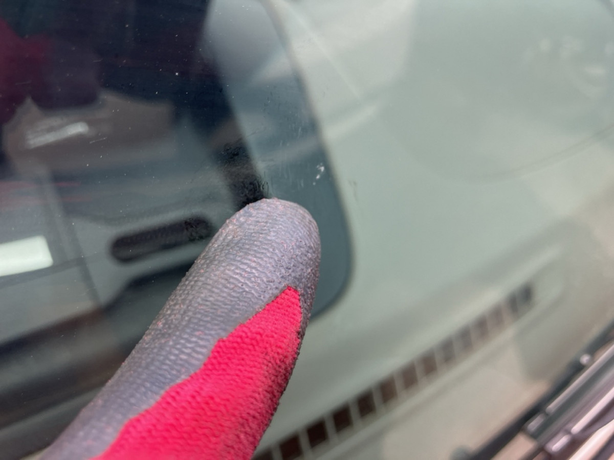 Windshield slightly cracked by a flying stone.