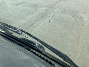 Windshield slightly cracked by a flying stone